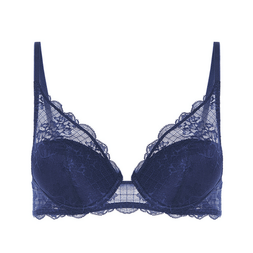 Meticulously crafted, this lace push-up bra features underwire for added support and a plunging neckline, enhanced with delicate scalloped lace trim. The foam cups are covered in lace, combining style and comfort effortlessly.